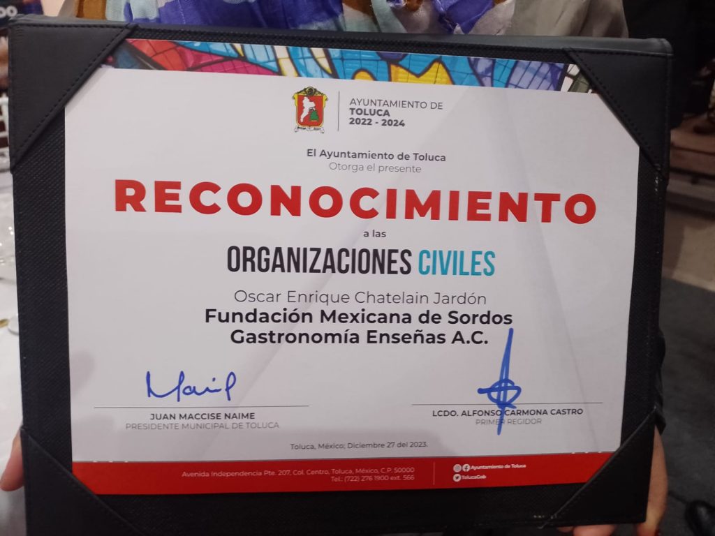 Gastronomía EnSeñas recibe reconocimiento del Ayuntamiento de Toluca